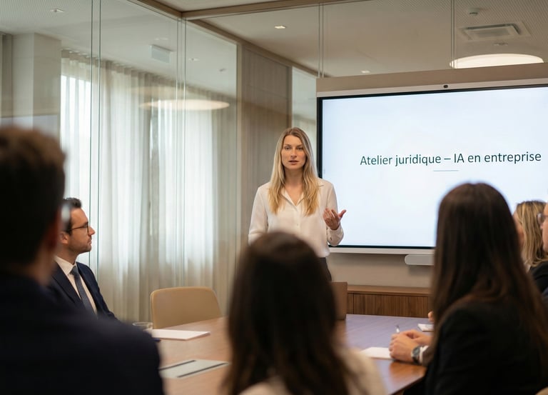 Artificial intelligence is transforming organisations while increasing contractual, tax, regulatory and operational risks. I deliver tailored workshops to structure your internal use cases and train your teams (executives, in-house lawyers, CFOs, compliance, procurement, sales, project and operations teams).
